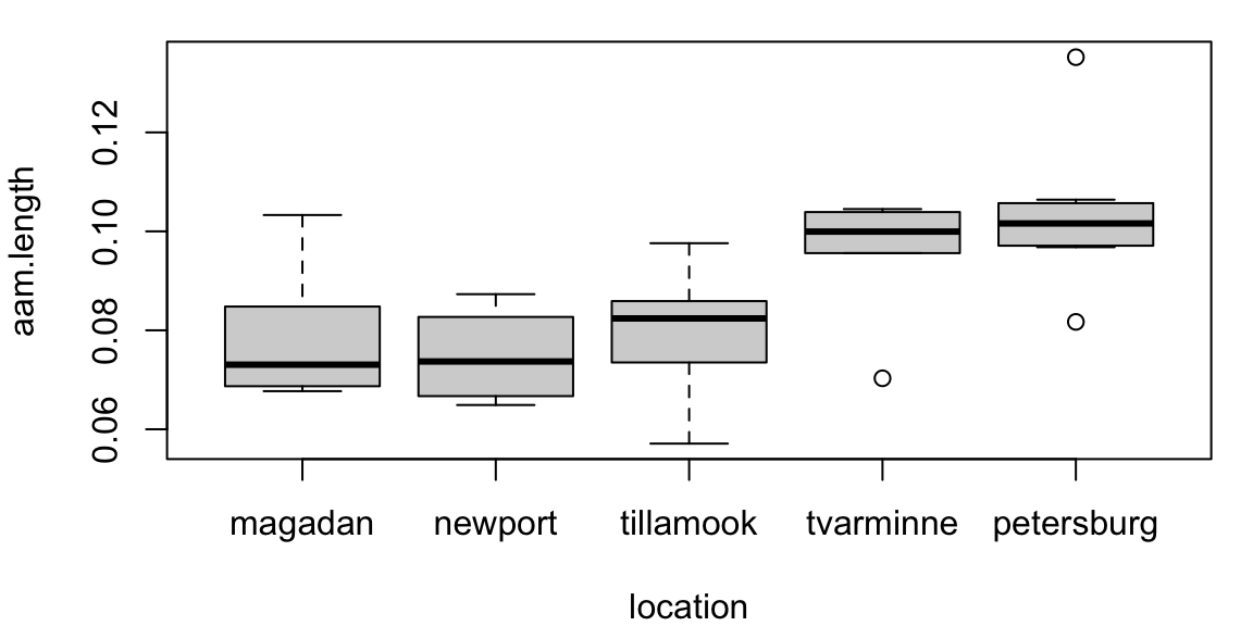 The data provide evidence that the distribution of AAM lengths differs by geographic location (Kruskal-Wallis test, p = 0.0025)