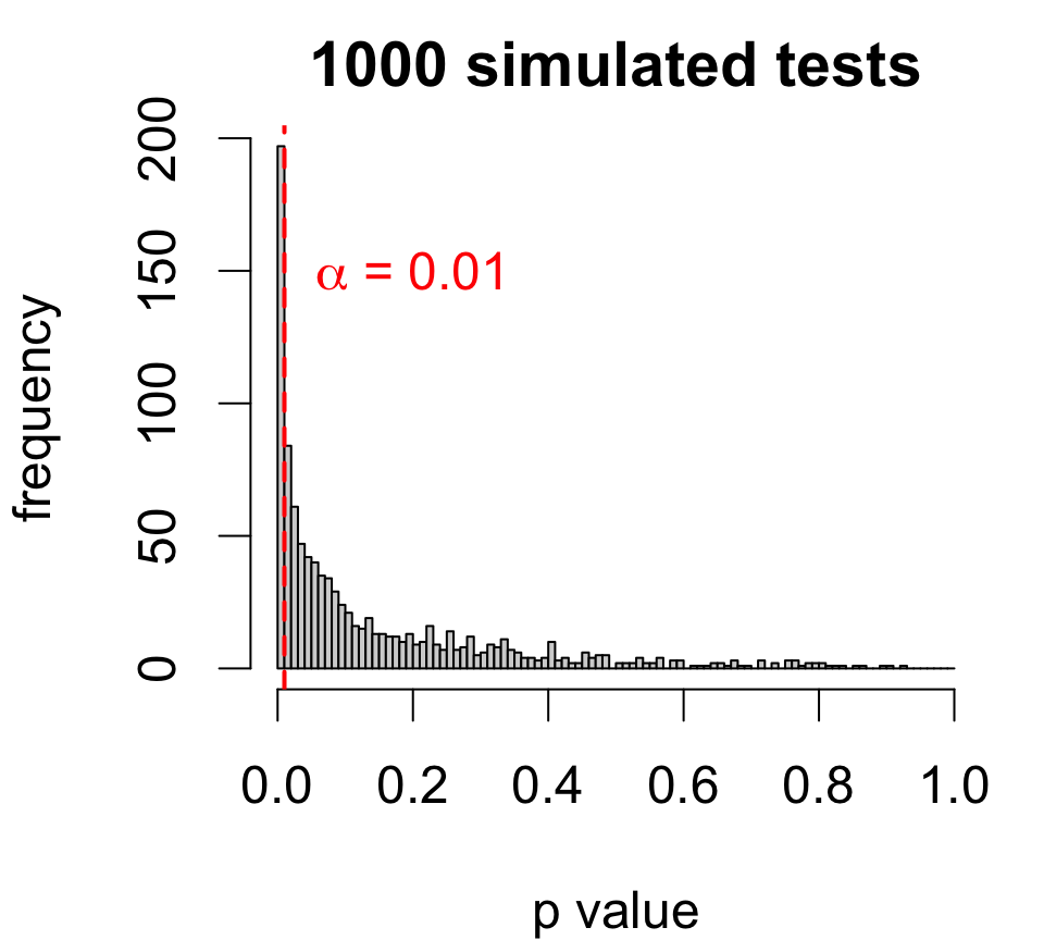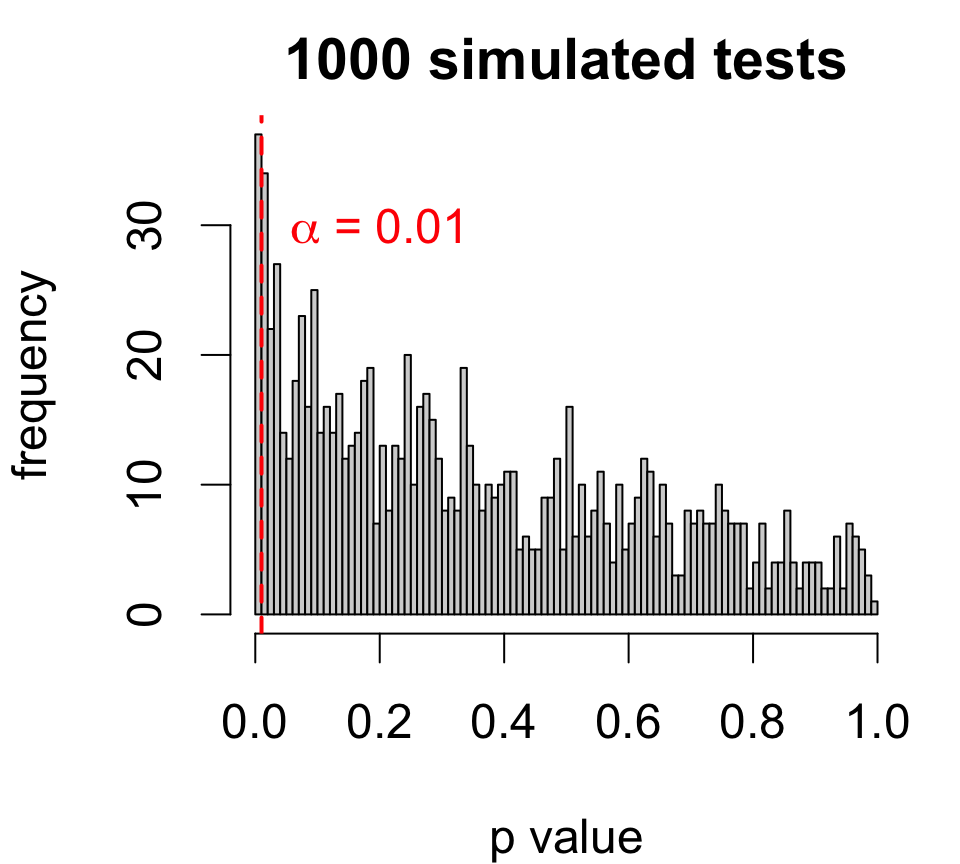 The type I error rate is controlled at the significance level \(\alpha\) by design.
