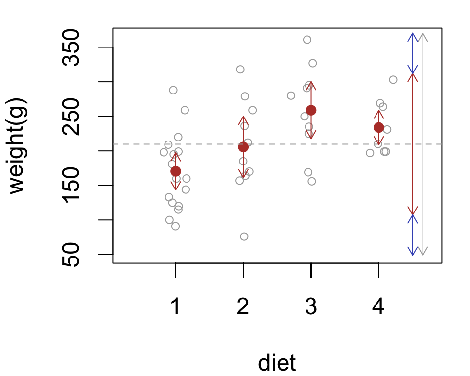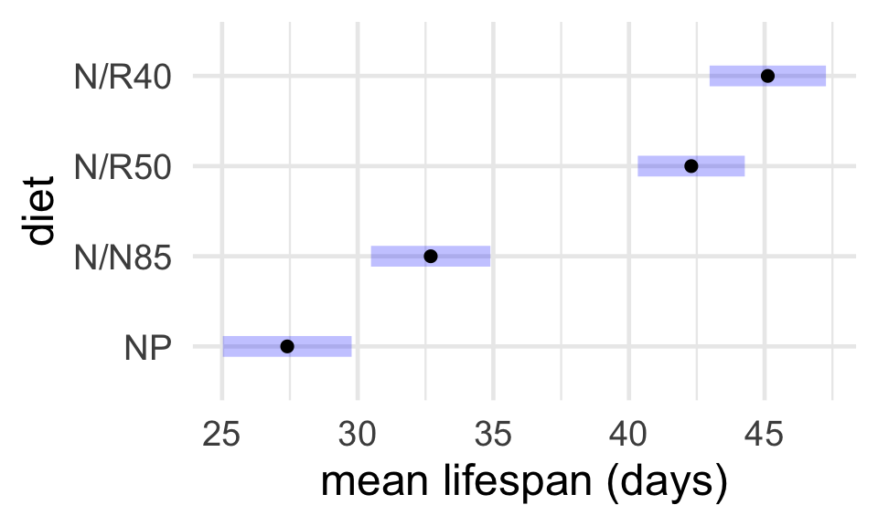 If there is no effect of diet, ranks will be randomly distributed among groups. This idea leads to the rank sum test: